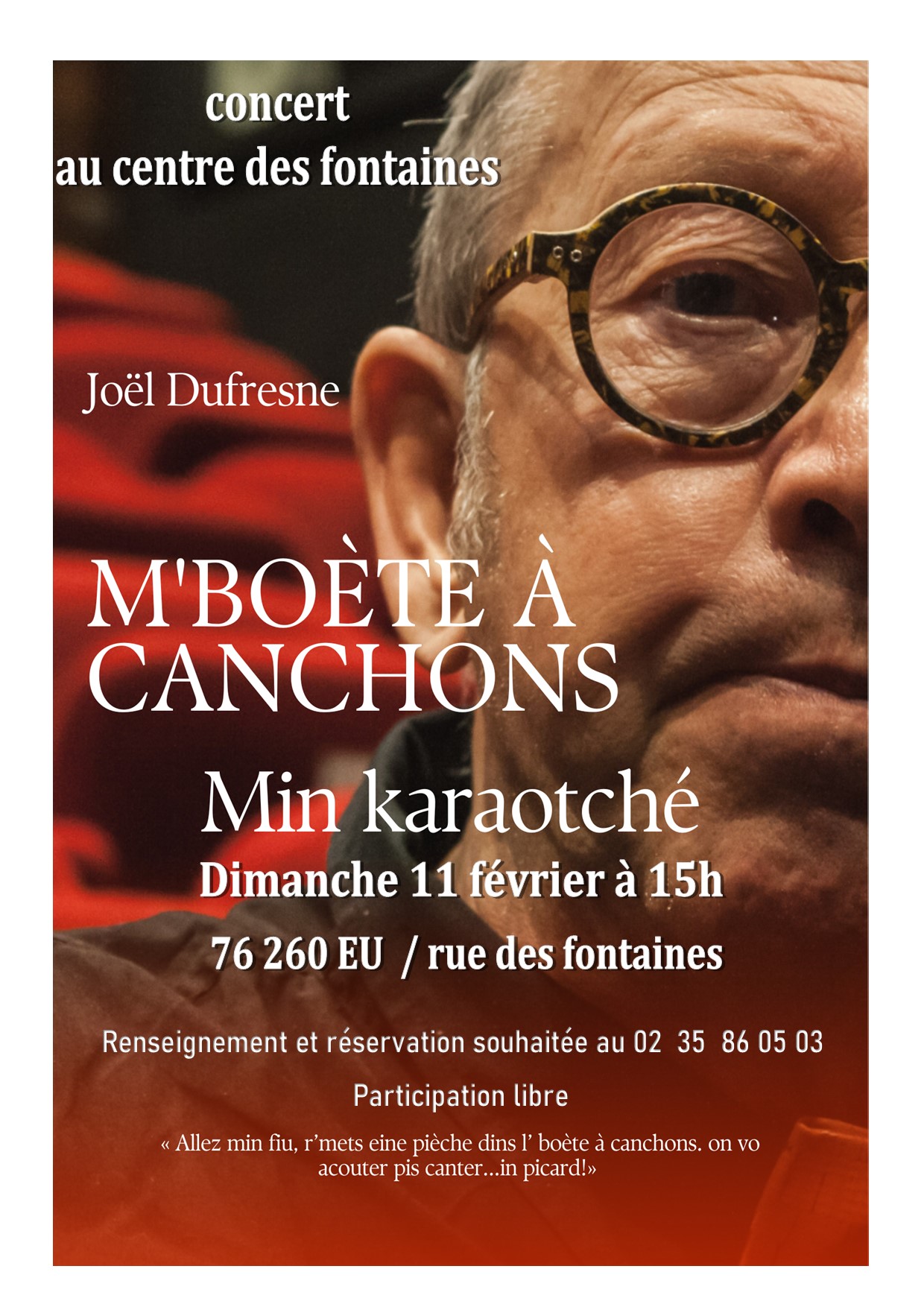 « Allez min fiu, r’mets eine pièche dins l’ boète à canchons. On vo acouter et pis canter…IN PICARD !»